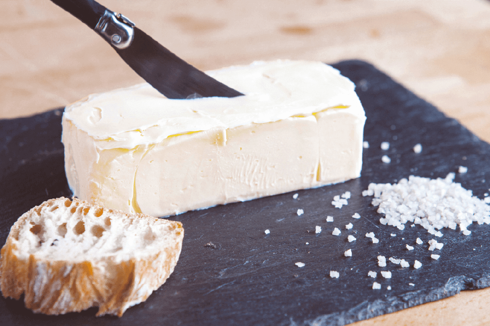生乳とクリームを分離させる前に、「乳酸菌」を加え、12時間以上発酵させています。これにより、芳香成分が非発酵バターの5~10倍に増えるため、香りとコクがあり、クリーミーな風味のバターになります。